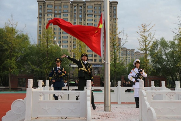 城市新闻延安电(副总编:张家南 张林) ★勿忘国耻、铭记历史★ 图为9月15日星期一全校师生举行升旗仪式,侯玉江副校长主持升旗仪