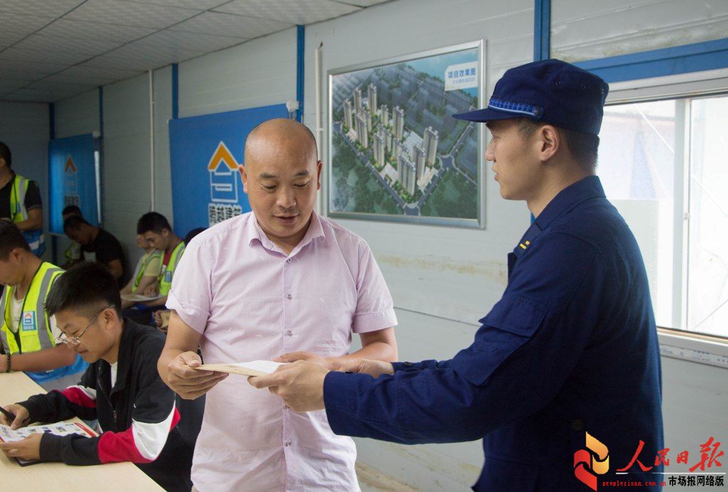 “室内消火栓是在火灾扑救中能就近提供水源支持对于及时控制火势蔓延起着重要作用,使用室内消火栓时打开消水栓的门,按下内部的报警键让其启动消防专用水泵。”在碧桂园工地施工现场,甘谷大队宣传人员为工友们讲解室内消火栓的使用方法。“把水带安装在阀门口上,而后迅速拿起枪头对准起火点,打开消防阀门就可出水进行灭火操作了,最好两人操作以便更好地节省时间,切记灭火前要先断掉电源已免发生触电事故……”。针对建筑工地人员密集、消防意识淡薄、安全隐患大等特点,宣传人员采用知识宣传和现场互动相结合的方式,用通俗易懂的语言提醒工友们注意日常安全用火、用电、用气,对施工现场火灾处置程序,如何报火警,灭火器及消火栓的使用方法,如何疏散逃生等内容进行了详细讲解。