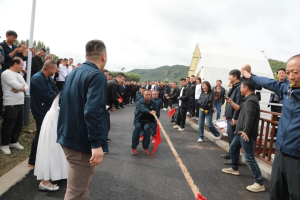现场呐喊声此起彼伏。包苹果比赛率先开赛,包装材料轮番上阵,既要速度更要颜值;打箱子擂台同样紧张,胶带“唰唰”作响,一箱苹果便封箱成型。烟叶分级赛区则一片安静,选手们眼明手快,看色泽、比长度,手指翻飞间便完成烟叶分级。最热闹的拔河赛把气氛瞬间推向高潮,各乡镇代表队铆足劲头,麻绳中线左右摇摆,加油声回荡在稻浪之上。