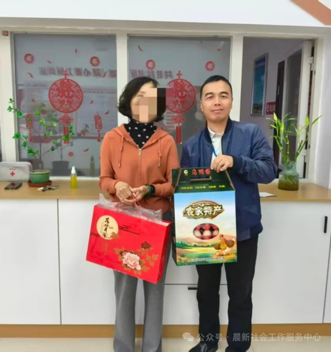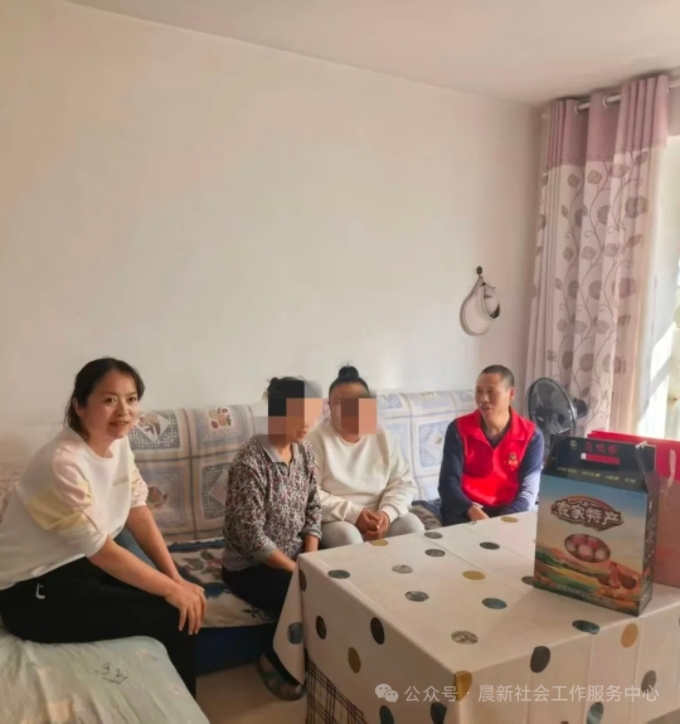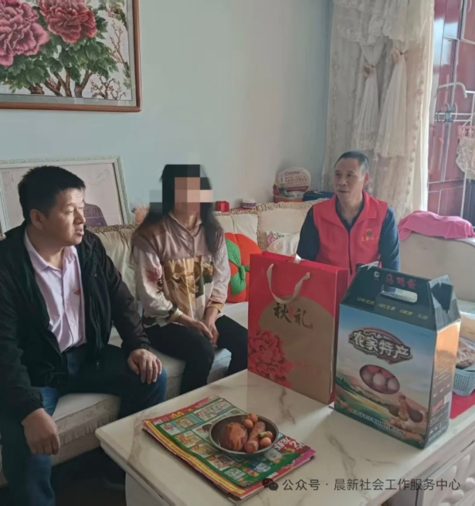 社工与社区领导以及工作人员组成慰问小组,逐一走进服务对象家中,与他们促膝长谈。关切地询问着他们的身体状况、生活需求与实际困难,倾听他们的心声与期盼。同时,为他们送上精心准备的月饼、鸡蛋等节日慰问品,每一份慰问品都承载着沉甸甸的关爱,每一句叮嘱都传递着家人般的温暖。