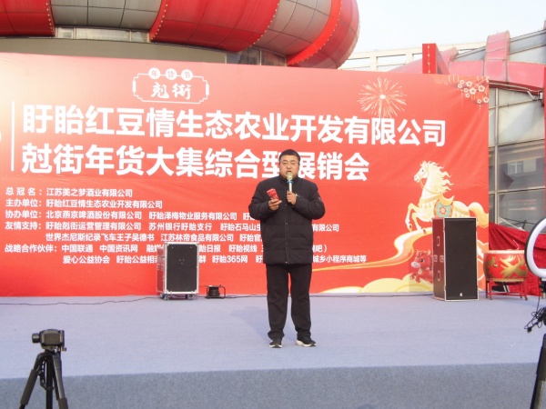 城市新闻江苏电(董培勤 徐新新)盱眙红豆情生态农业开发有限公司年货大集展销会近日在尅街拉开帷幕。本次展销会由江苏美之梦酒业有限公司总冠名,盱眙县红豆情生态农业有限公司倾力主办,为广大市民带来了一场集购物、文化观赏于一体的盛大节日。
