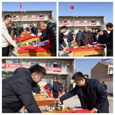 义写现场,临渭区教体局教育书画研究会的老师们笔走龙蛇,在红色喜庆的对联纸上写下对乡村振兴的美好期盼和对父老乡亲的新春祝福,现场求字的群众络绎不绝。