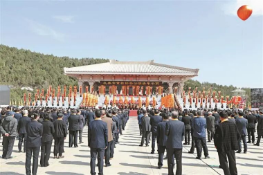 陕西省省长赵刚恭读祭文。随后,全体人员向轩辕黄帝像行三鞠躬礼。