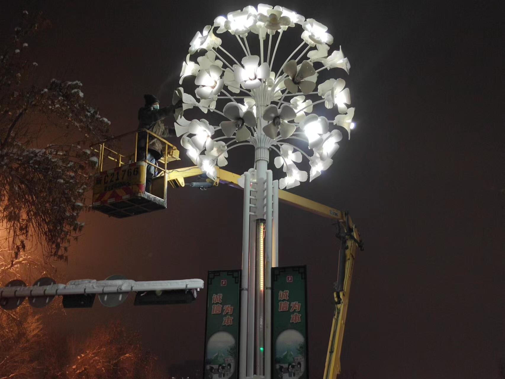 近日,在我市东环路和西环路上,石河子市城管局市政工程养护中心的路灯检修工人对该路段上的玉兰花灯开展了冬季全面检修。 一台