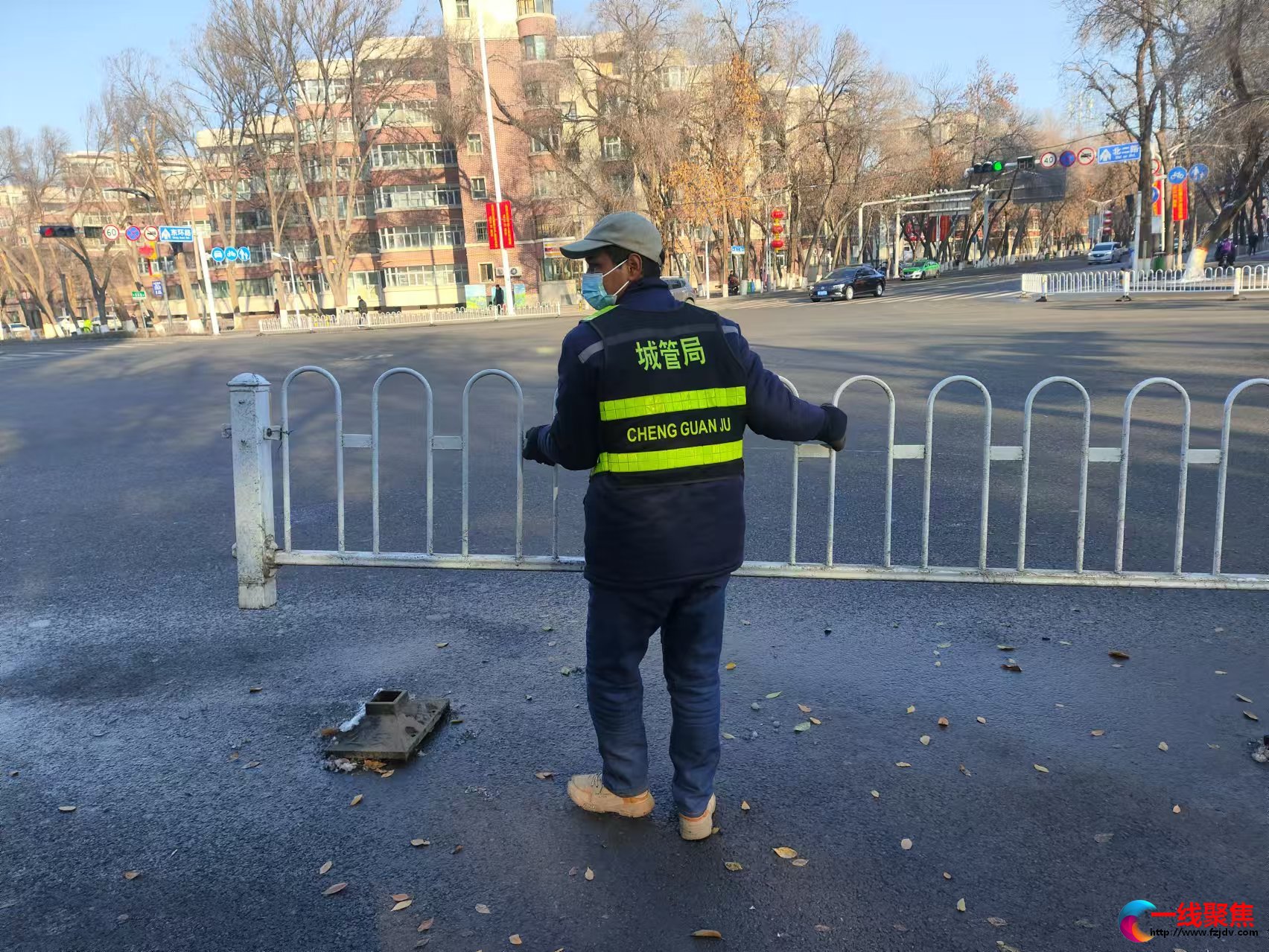 11月25日,在我市北一路和西环路交叉路口处,石河子市城管局市政工程养护中心的交通设施维护人员正在对路口的隔离护栏开展拆除工作,