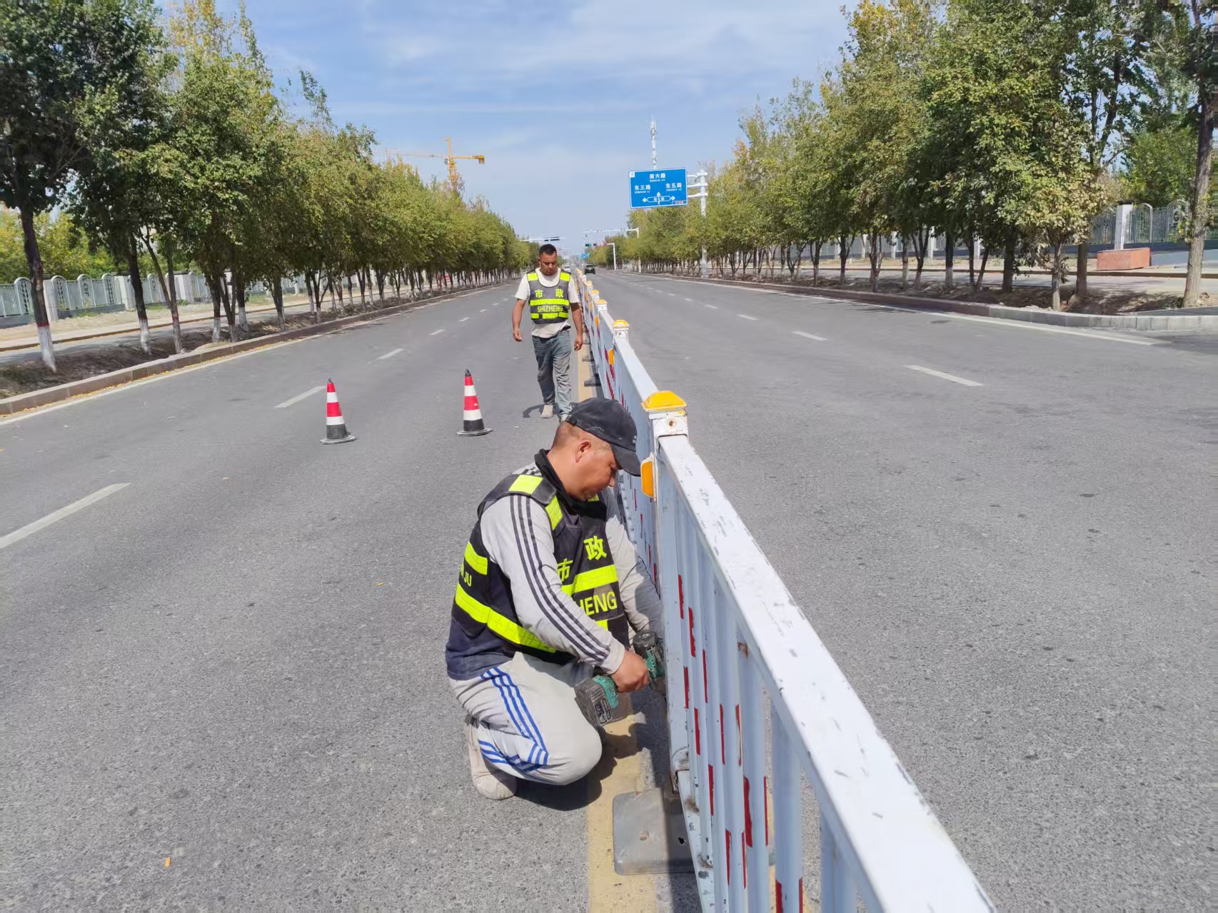 近日,为消除道路交通安全隐患,保障行人尤其是高校学生的出行安全,石河子市城管局市政工程养护中心在东四路(科教路至火炬路)石河