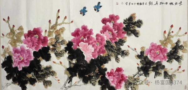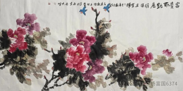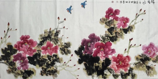 他的作品里,牡丹从不是孤立的美人,而是承载千载文化的符号载体。雍容之姿象征富贵荣华,热烈怒放则隐喻生命力喷薄;飞鸟翩翩舞动如自由的精灵或福瑞使者。