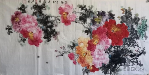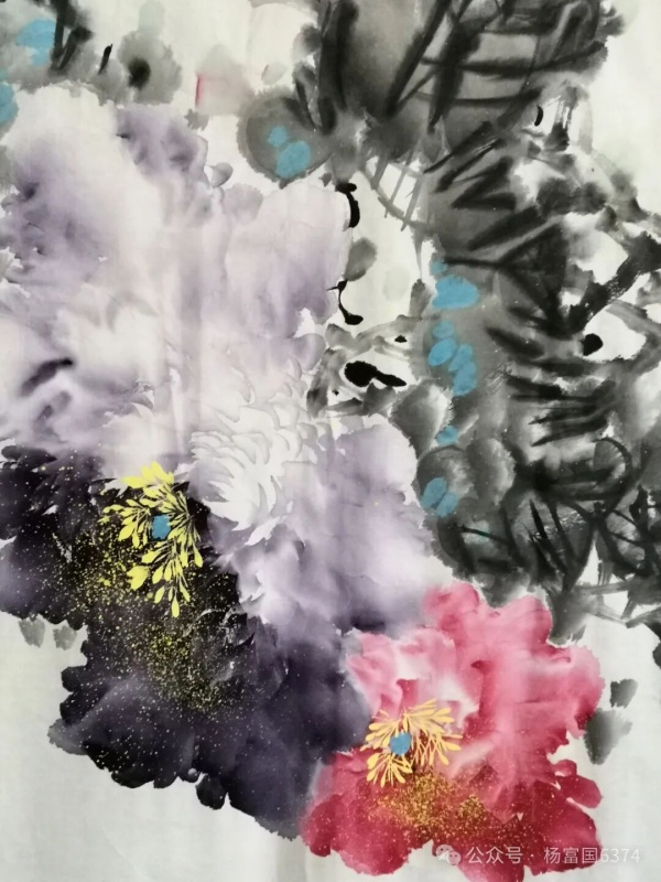 魏胡子伯庆的牡丹,在随类赋彩的底色上,叠加着浓烈情感。红粉主调是牡丹的魂魄标识:深红热烈似火焰,粉红娇柔若少女脸颊,粉白则素雅如玉如云。魏胡子以生动的色彩梯度,捕捉花朵绽放的不同生命瞬间,其设色超越自然,以心御色,使富贵花语在纸上自由交响。