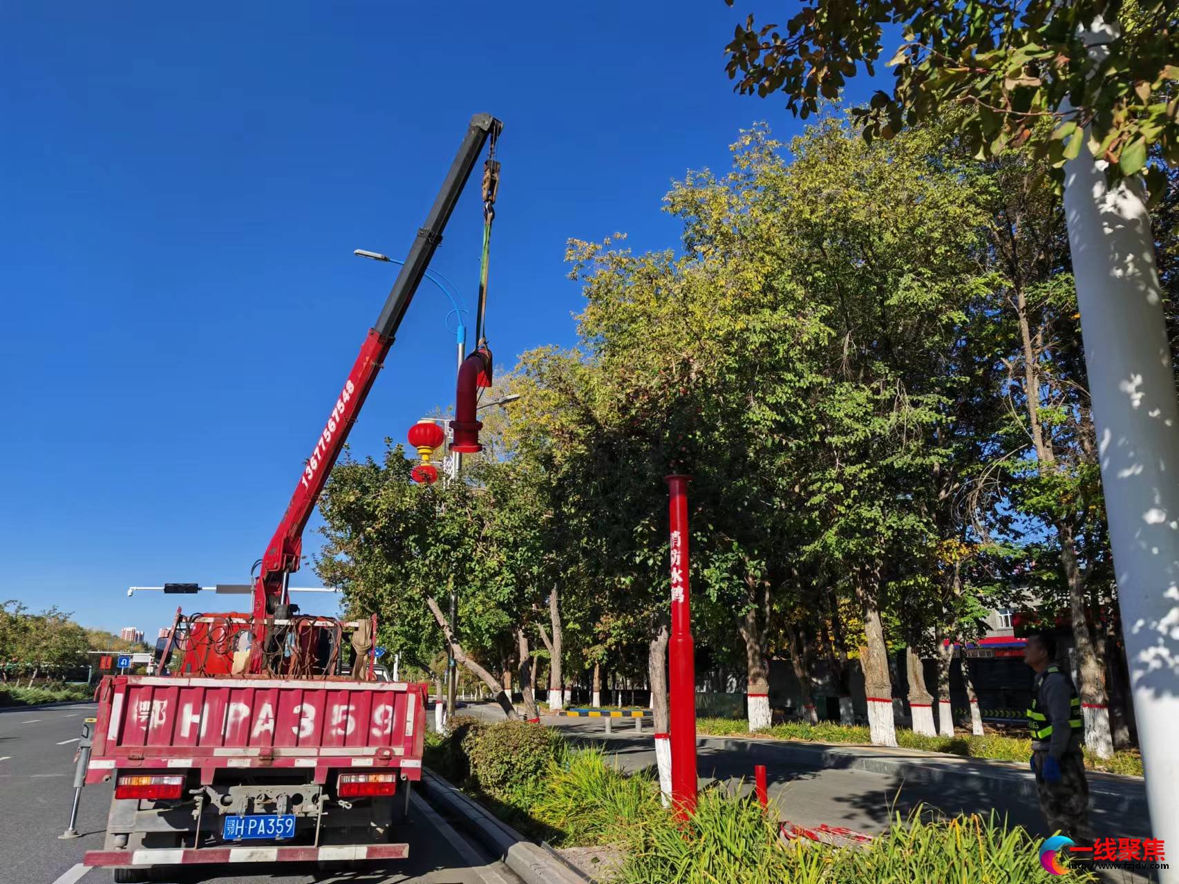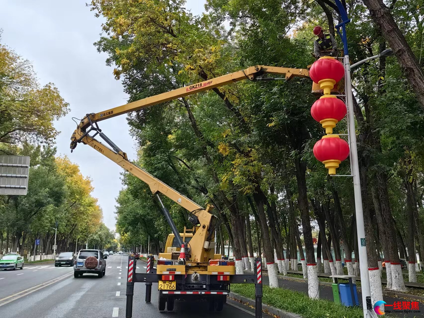 9月29日一大早,在石河子市城管局市政工程养护中心的库房组装现场,路灯师傅们已开始有条不紊的组装着一串串红灯笼景观灯,为正在前