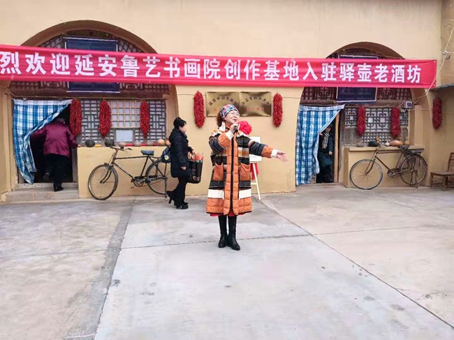 揭牌仪式结束后,延安鲁艺书画院部分书画家现场即兴表演了唱歌、扭秧歌节目,到场的延安鲁艺书画院院士们参观了驿壶老酒坊。