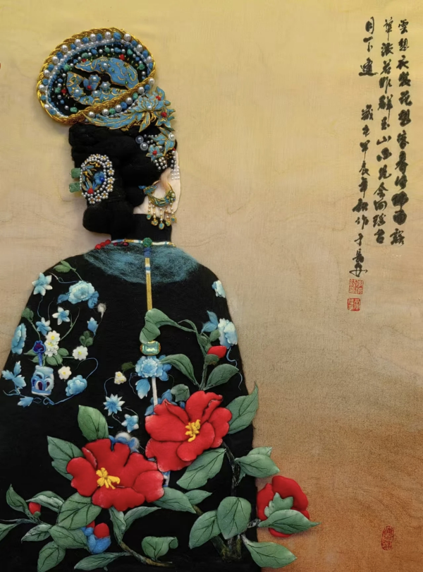 第四代棉絮画传承人李海红老师2019年1 2月,作品《棉絮画牡丹》编号ZJY2019063,经评选委员会评审,获第三届中国世界遗产工艺美术金狮奖、书画类银奖。2022年7月13日,李海红老师喜迎二十大棉絮画系列精品之《牧云终南》,CCTV文化中国头版头条报道。2023年1月19日,棉絮画作品《双兔奔逸》荣登国家级媒体《中国艺术报》。2024.10李海红老师棉絮画《东方之韵》获得金奖。2025.2月12日,李海红老师、汤瑶、贾伟花作品《灵蛇献瑞》《灵蛇闹春》入选市总工会土门文化宫2025迎新春职工非遗文化交流展。2025年7月11日,李海红老师带着子弟们与南院门街办车家巷社区、德福巷社区、保吉巷社区及南院门社区联合开展“活态非遗入社区,文化传承润民心”活动……
