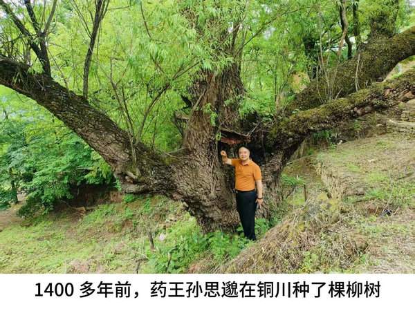 相传1400多年前,孙思邈到照金芋园村山中采药,随手将柳木手杖插入地下。次年他再去时,柳木再生,已经长成柳树,历经千年,这棵参天柳树树